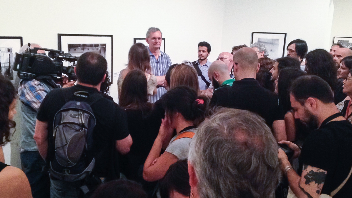 Las jornadas empezaban de manera grandilocuente y paradójica, Martin Parr era el guía de su propia muestra, recorría la sala rodeado de un grupo de gente que lo seguía y le sacaba fotos. Él se divertía y animaba a las preguntas. Es un hombre con humor, el mismo que tienen sus fotos, de fácil trato, sin pose, crítico y humilde. Nos contó lo agradecido que estaba a Margaret Tatcher, que gracias a la negligencia de su mandato inspiró el trabajo de tantos fotógrafos documentales –siempre somos un poco izquierdosos-, que como él la detestaban, y atacaron con ira sus políticas a través de sus obras.